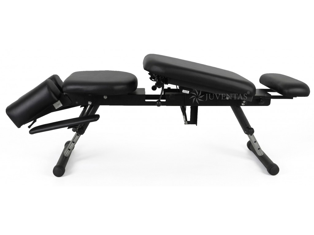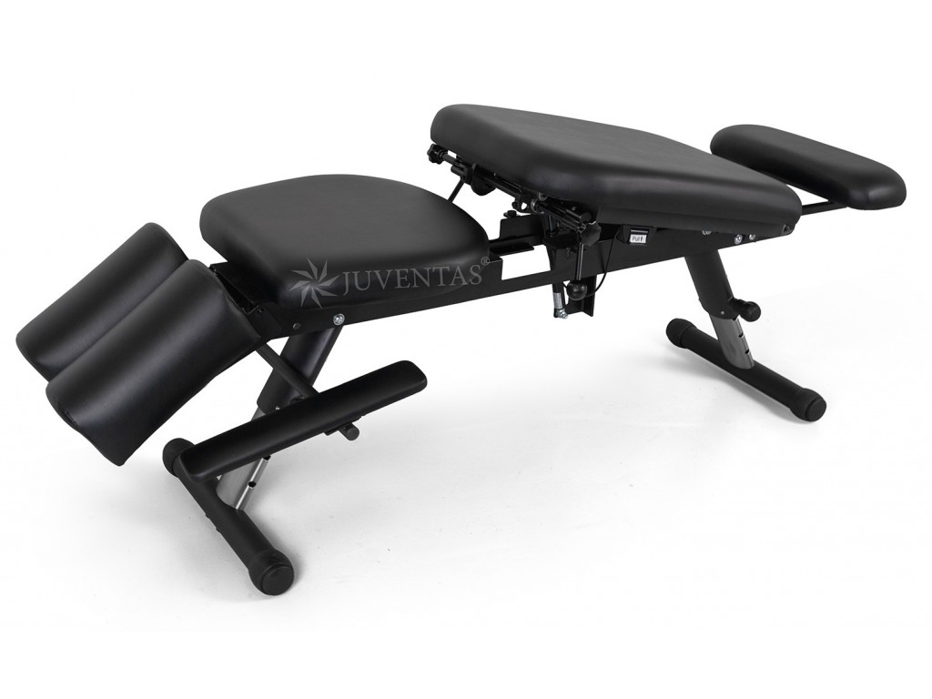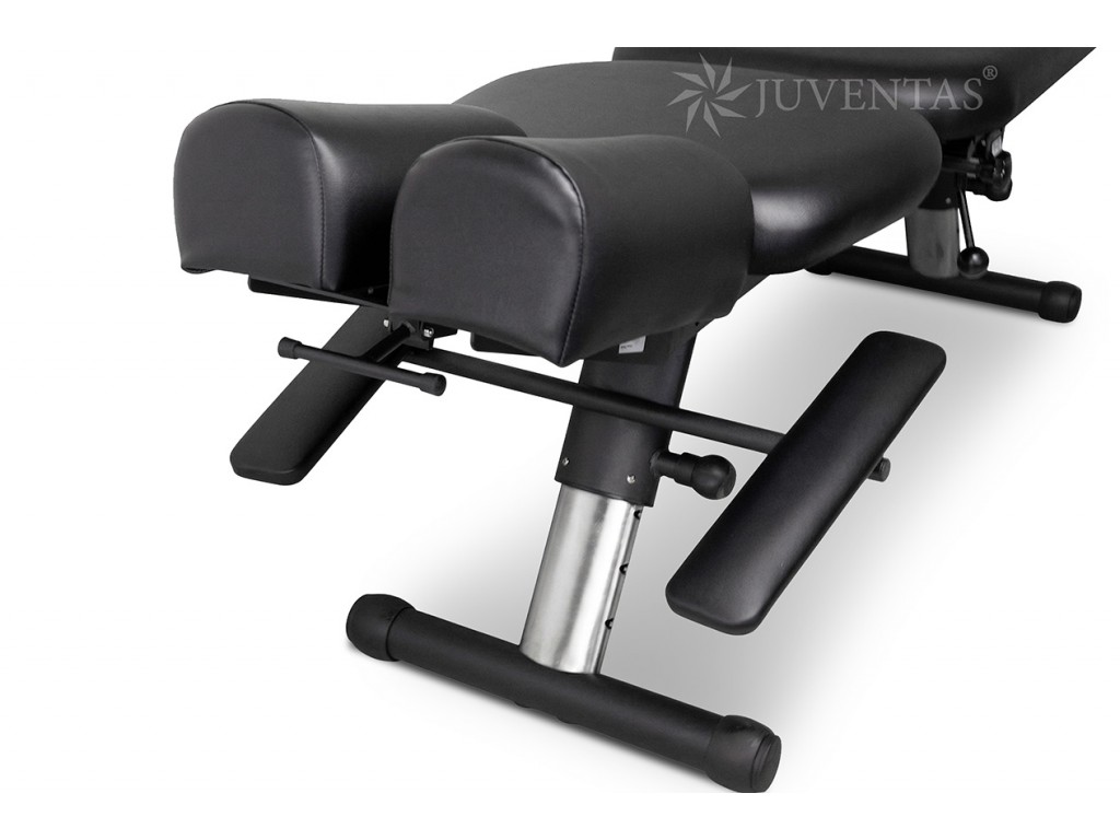 Az Iron 240 chiropraktikai kezelőasztal tartós kárpitozással rendelkezik, amely intenzív használatnak is ellenáll, valamint szilárd, fekete színű acél teherhordó szerkezettel van felszerelve.