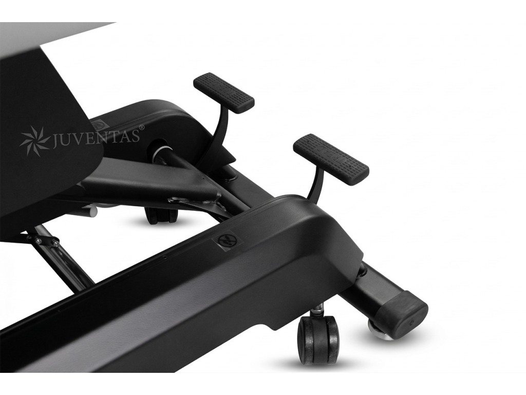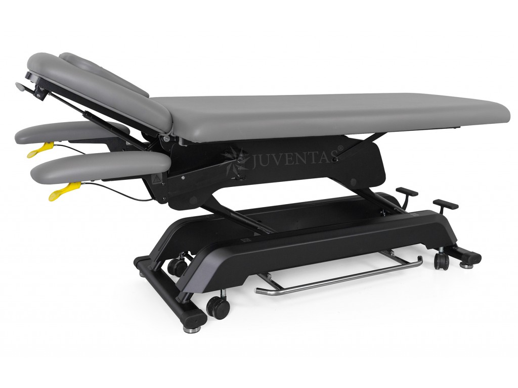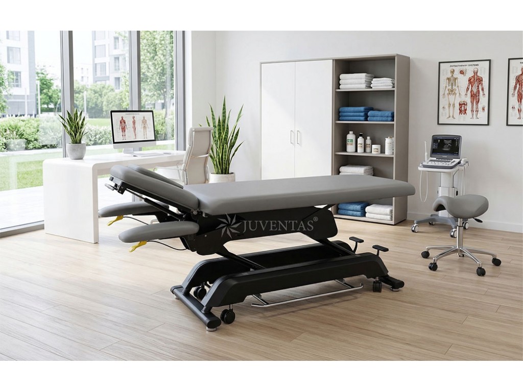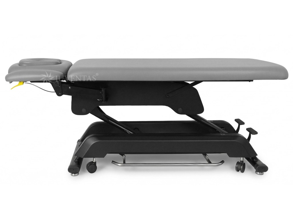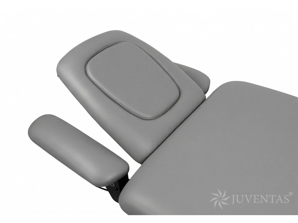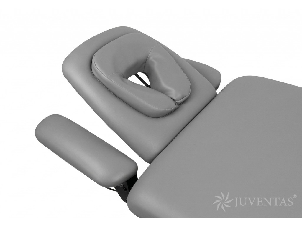Az asztal fekete színűre festett acél szerkezettel és műanyag alsó burkolattal rendelkezik. A fekvőfelület 5 cm vastag puha habszivaccsal van ellátva, amely biztosítja a páciens kényelmét. A csomagban két cserélhető fejtámla-párna található – egy dugóval ellátott és egy arcnyílással rendelkező.